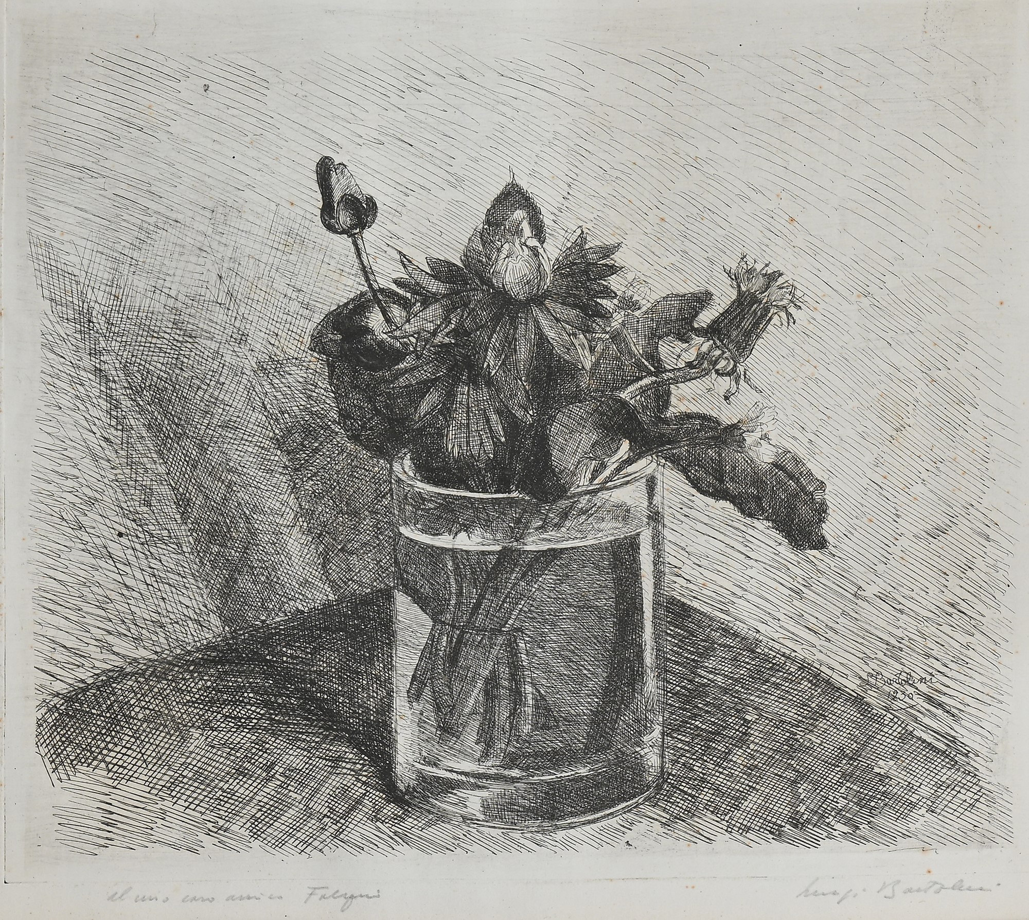 Luigi Bartolini Cupramontana 1892-Roma 1963 Il Mazzetto 1930 Acquaforte Firma e dedica "Al mio caro amico Falqui, Luigi Bartolini". Firma e data in lastra "L. Bartolini 1930". cm 20,5x24,2 (lastra) - con cornice cm 39,5x54