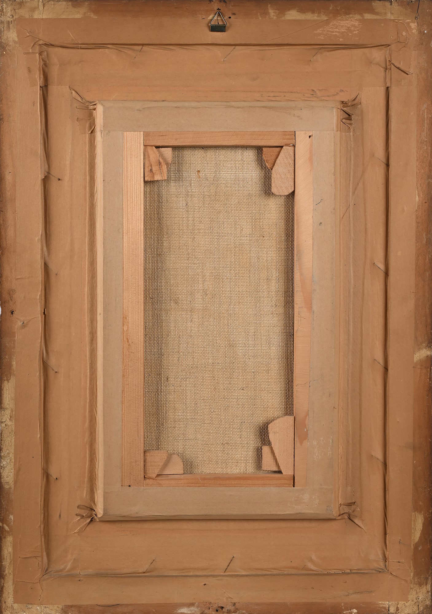 Mino Maccari Siena 1898-Roma 1989 Figure 1962 Olio su carta applicata su tela Firma in basso a destra "Maccari '62" cm 46x26,5 - con cornice cm 68x48