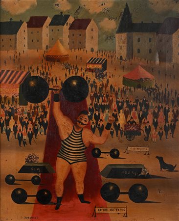 Anonimo del XX secolo Scena circense Olio su tela Firma in basso a sinistra "P- Duboners" cm 61x51 - in cornice cm 72x61