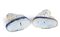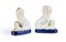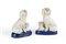 Coppia di gruppi in ceramica con cane barboncino e cuccioli, Staffordshire, Inghilterra, XIX secolo figure ritratte sedute su cuscini blu con accenti dorati cm 13x11x5