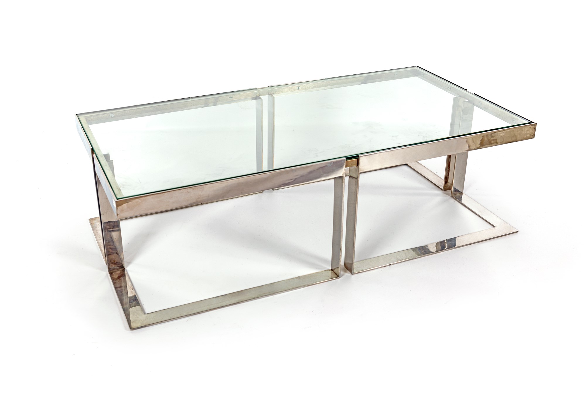 Tavolino basso in metallo cromato e vetro cm 36x120x60