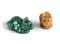Due gatti accovacciati in ceramica verde e arancio, produzione artigianale cm 6x12x5,5