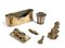 Sei accessori da scrivania in ottone portacarte Jordan Sheffield Collection, cm 9x24x6, bicchiere portapenne polilobato, Royal Family, altezza cm 8 e quattro mani fermacarte