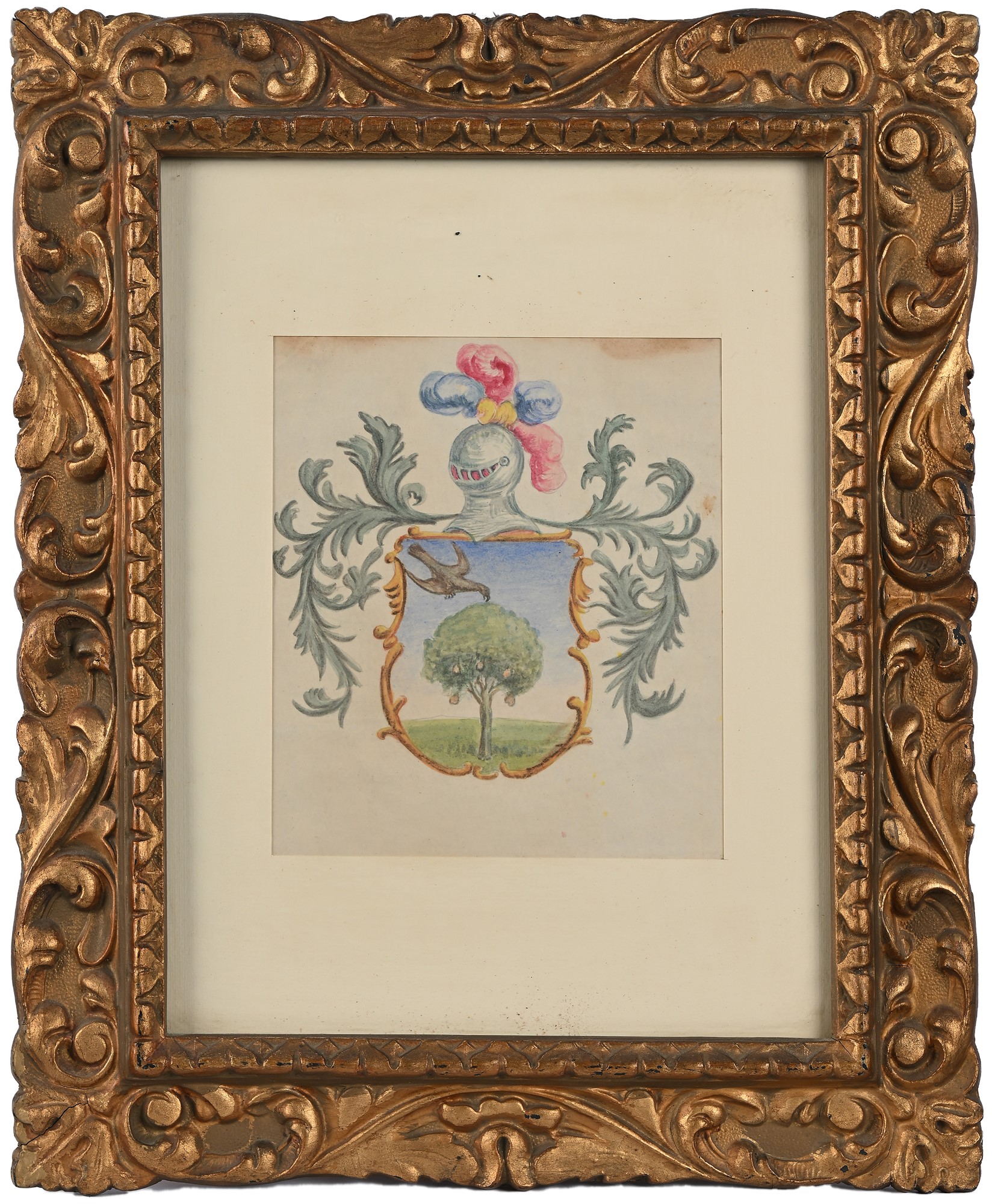 Stemma araldico della Famiglia Falqui matita e acquerelli su carta cm 23x19 - in cornice cm 50x41