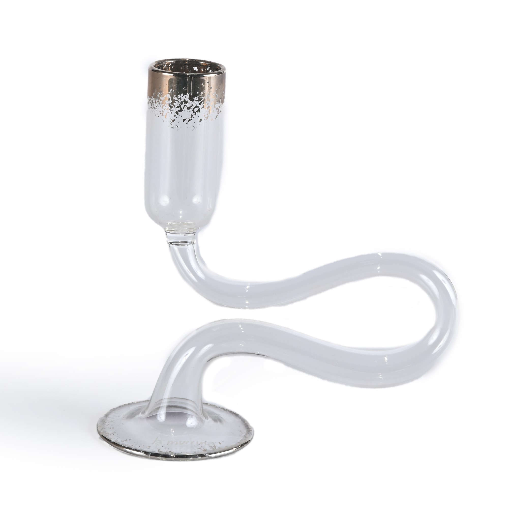Bugia in vetro incolore “La Murrina” costituita da una canna curvilinea su piede circolare cm 14x12x6
