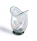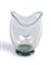 Vaso in vetro soffiato incolore iridato di forma schiacciata al centro su basso piede circolare verde altezza cm 16
