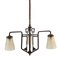 Lampadario Art Decò in ottone a tre luci diffusori a campana in vetro lattimo opaco stampato caratterizzati da corolle cm 80x50