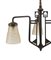 Lampadario Art Decò in ottone a tre luci diffusori a campana in vetro lattimo...