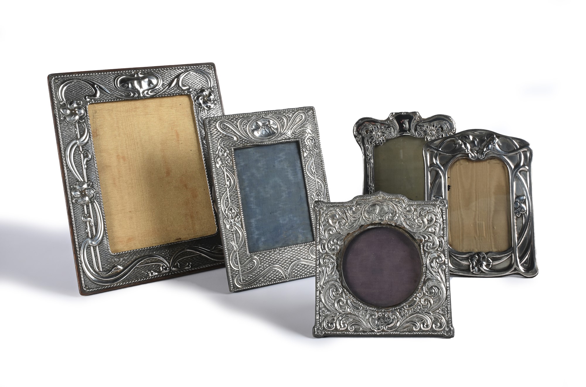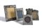 Cinque cornici da tavolo in lamina d'argento la più grande cm 30x25 (luce cm 21x15) - cm 16x15 (luce diametro cm 9)