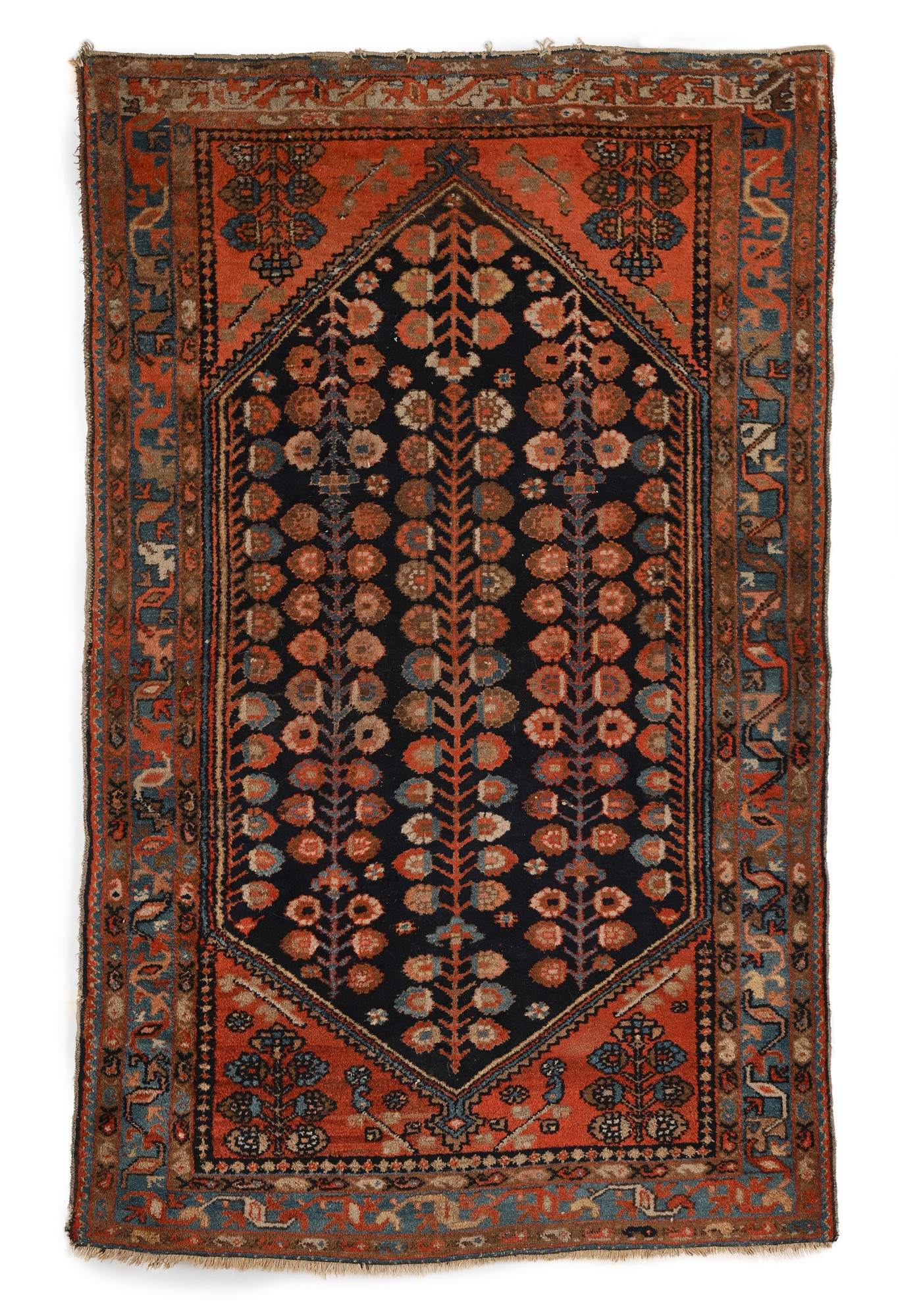 Lot 532 | Tappeto orientale blu e rosso centrato da un esagono blu con rami fioriti...