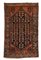 Tappeto orientale blu e rosso centrato da un esagono blu con rami fioriti...