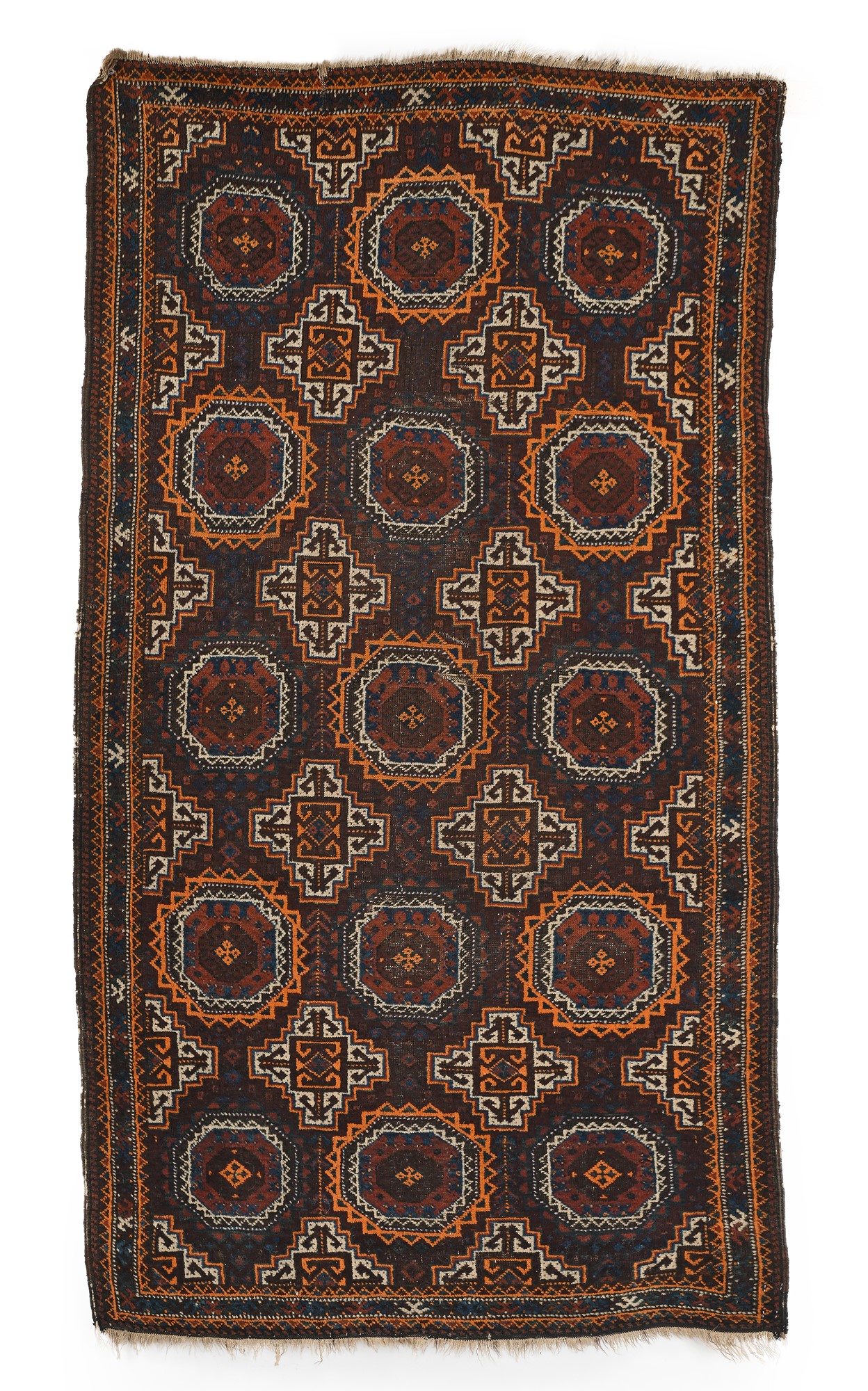 Tappeto orientale a disegno geometrico arancio e bruno cm 200x114