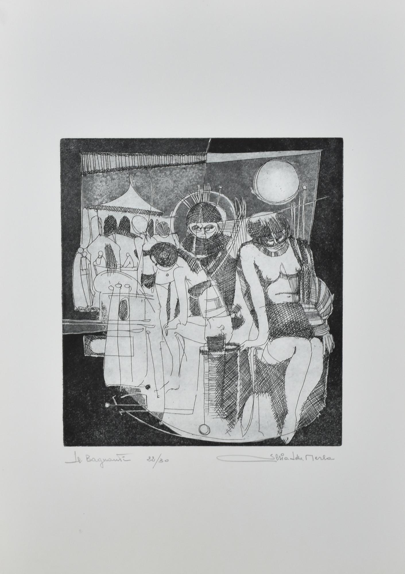 Gianni Sesia della Merla LE BAGNANTI incisione su carta, battuta cm 25x22; su...