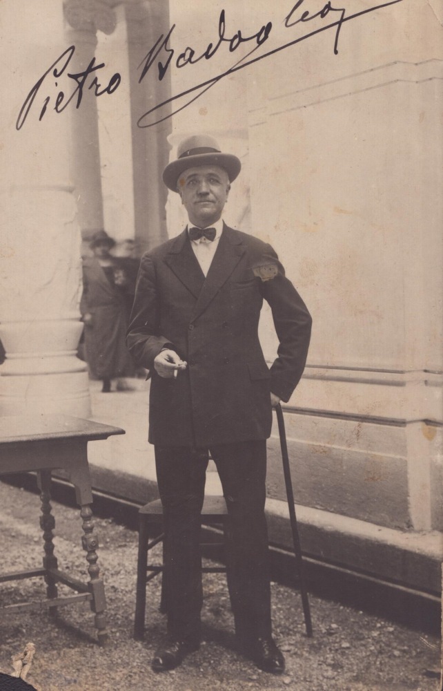 Foto con firma di Pietro Badoglio 14 x 9 cm