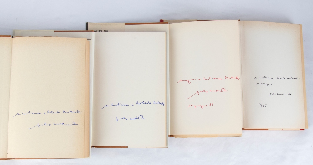 Lotto di quattro volumi, ognuno con dedica e firma autografa di Giulio Andreotti, scritte di pugno.