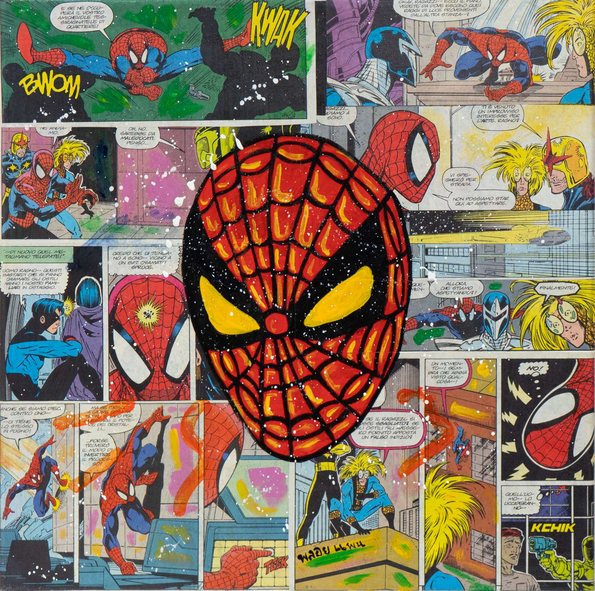 Boontuam Pornpairin, Senza Titolo, 2018, collage su tela, cm 30x30