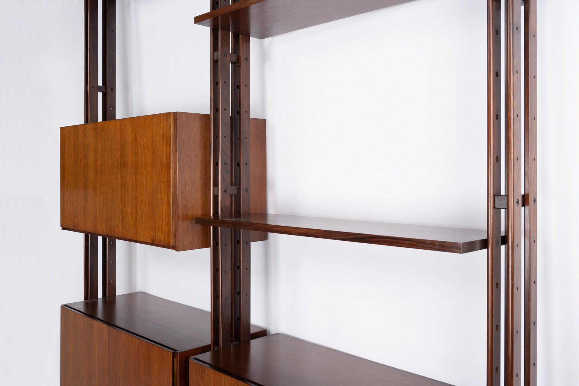 Franco Allbini Libreria LB7 Infinito, 1956/57;Piani regolabili con montanti fissati a pavimento e soffitto, legno