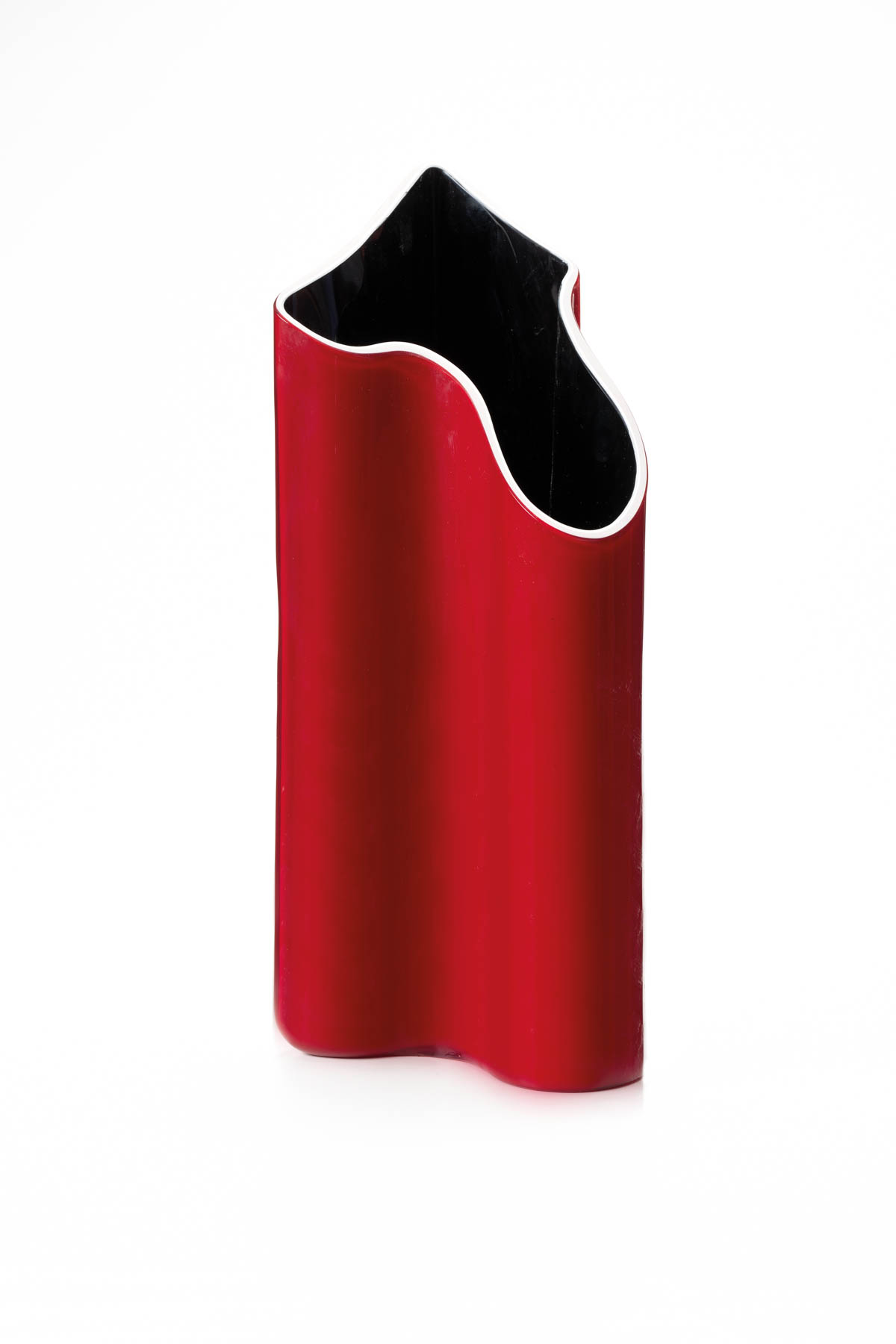 Timo Sarpaneva Vaso modello "Kelo";Vaso in vetro opalino bicolore (color rosso con interno nero) soffiato e lavorato