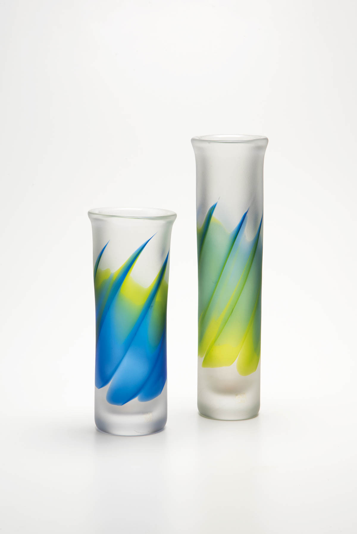 Göran Wärff Coppia di vasi;Vetro colorato, produzione Kosta Boda, h. 30 e
