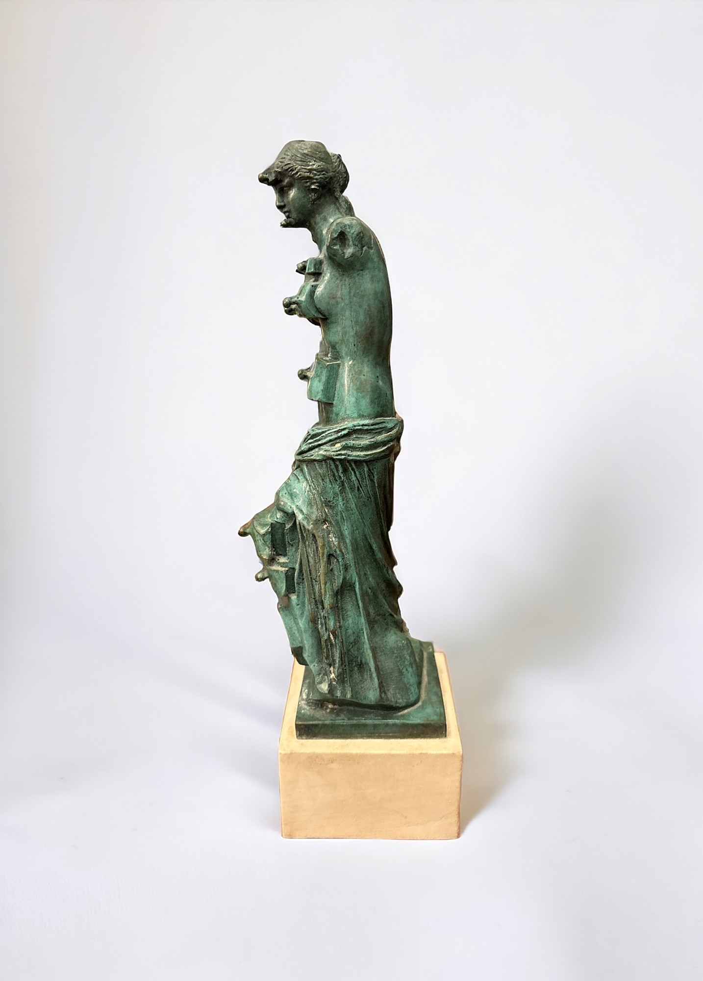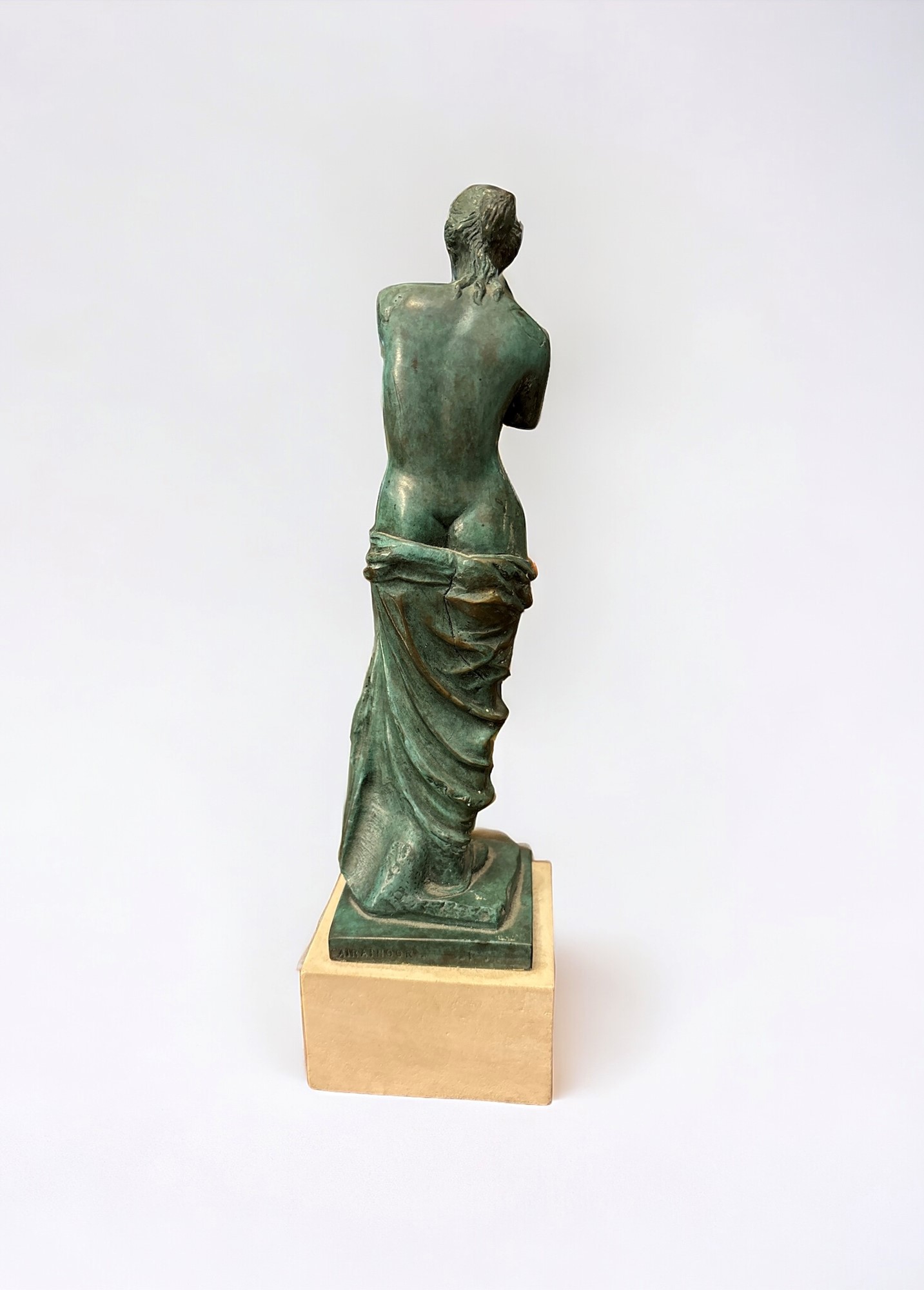 bronzo, patina verde h 21 cm. Base: 4 x 7 x 7 cm. Fonderia Airaindor. Es. n. 117/350. Firmato sul fronte.