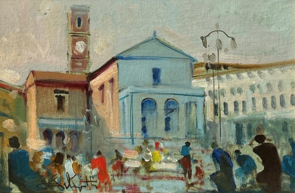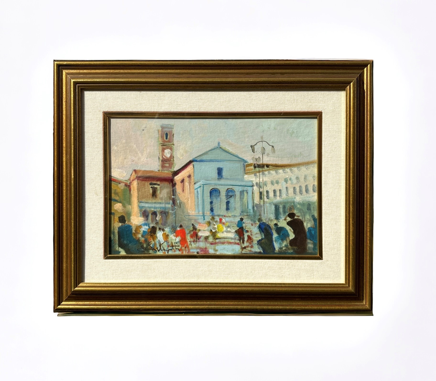 Dino Pelagatti (1932 - ) Piazza di paese olio su tela 20 x30 cm