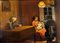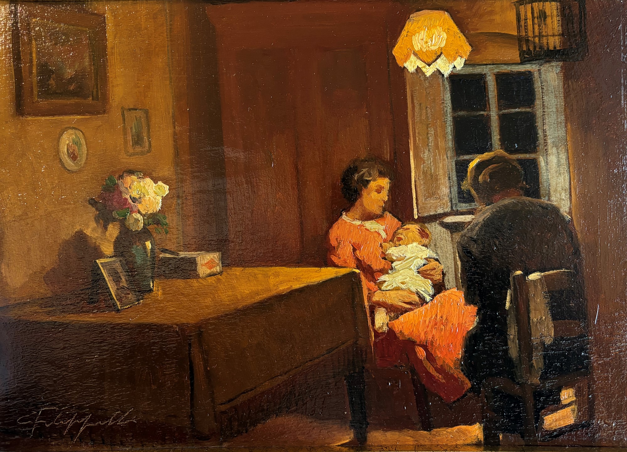Cafiero Filippelli (1889 - 1973) Scena d'interno con maternità olio su tavoletta 24 x 34 cm