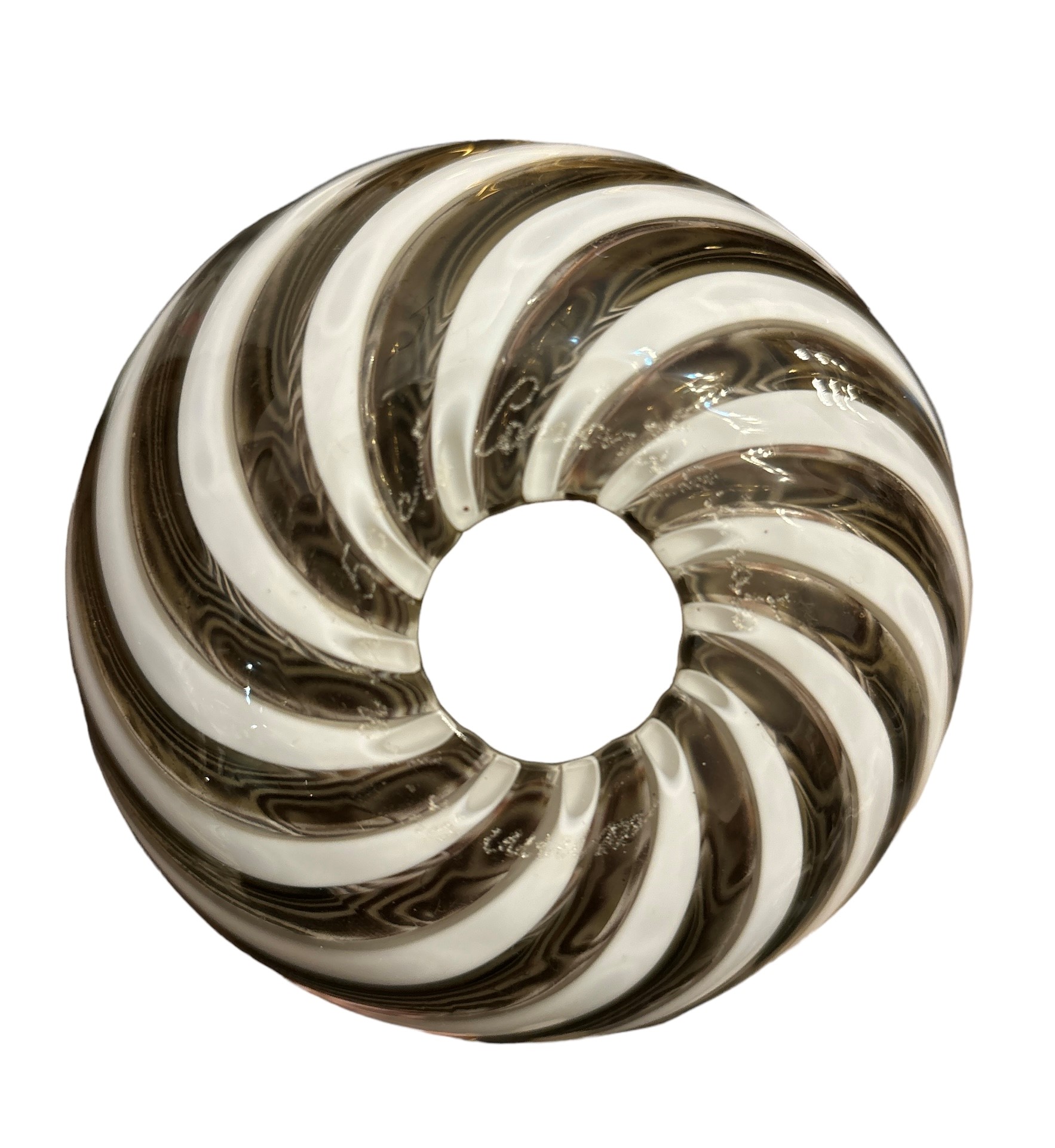 vetro di Murano 18 x 13 cm. Iscritto al retro a graffio: "Venini '97 per i 50 anni di Confartigianato". In vetro con spirali bianche e grigie.