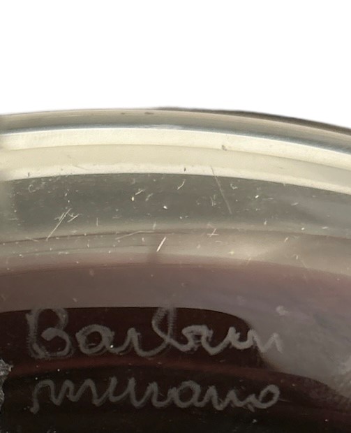 cristallo sommerso 6 x 22 cm. Parte inferiore color vinaccia. Firmato al retro all'acido.
