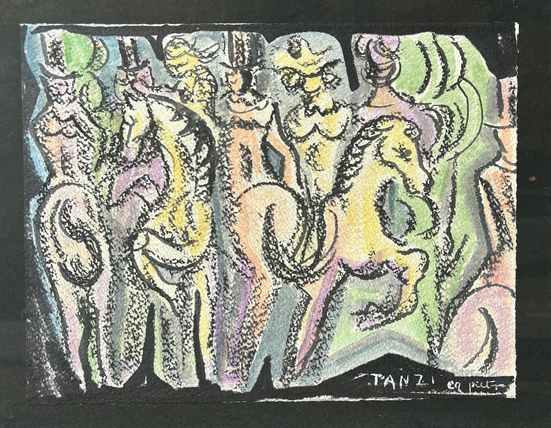 Gaetano Tanzi (1918 - 2017) Cavalli Tecnica mista su carta 28 x 37 cm