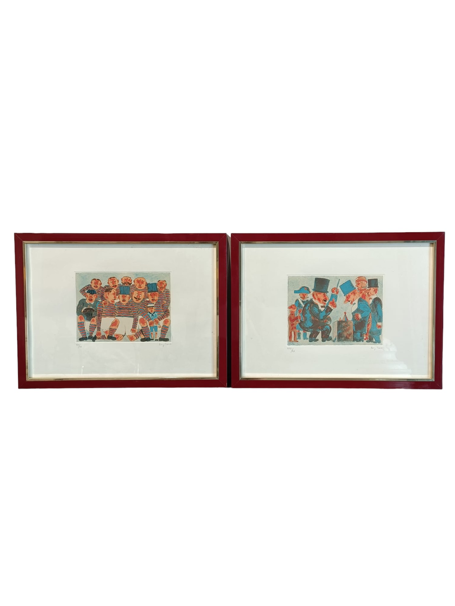 Franz Borghese (1941 - 2005) Coppia di acqueforti a colori diverse