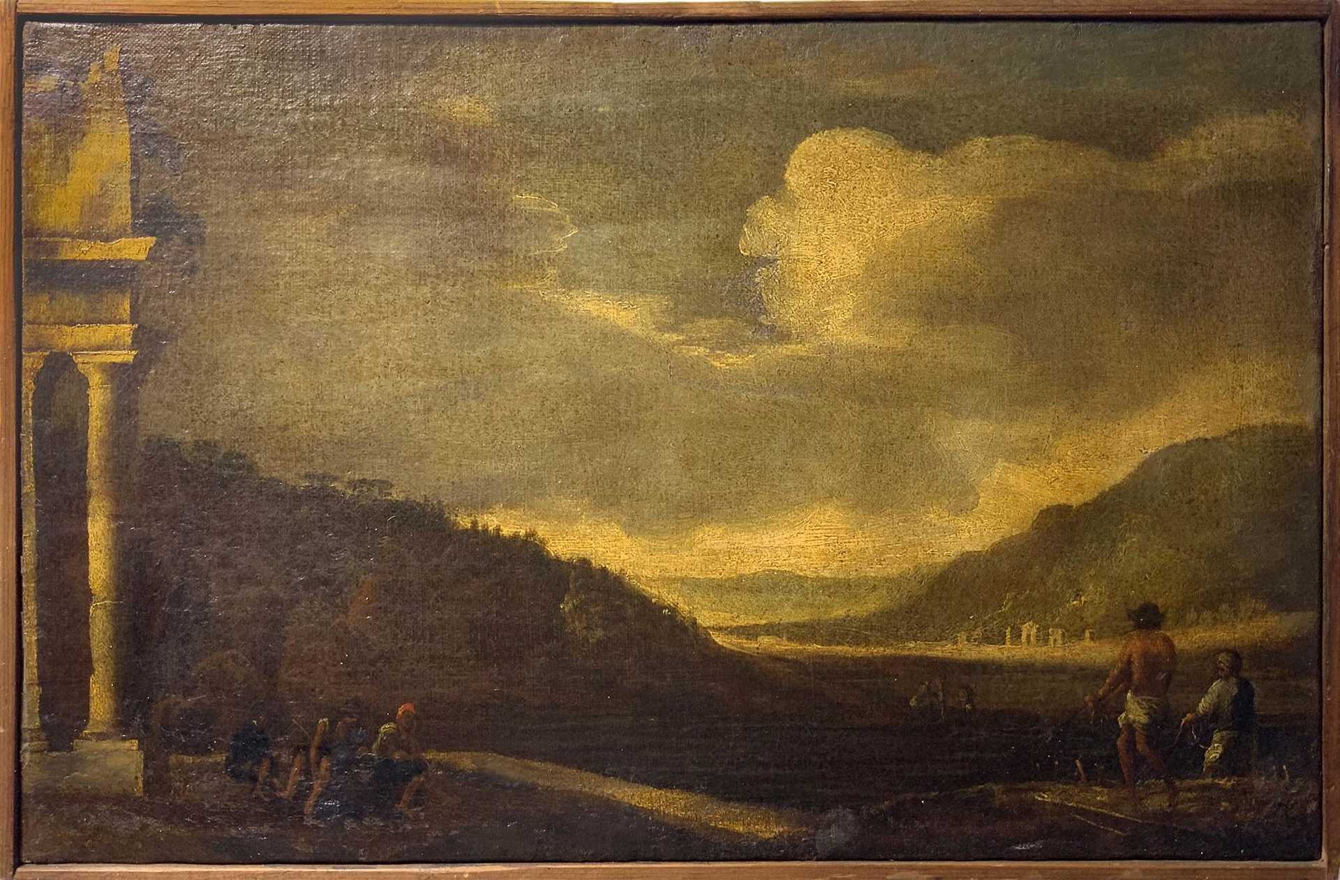 Niccolò Codazzi (Napoli 1642-Genova 1693) - Paesaggio con rovine, 17° Secolo cm 32 x cm 49 Olio su