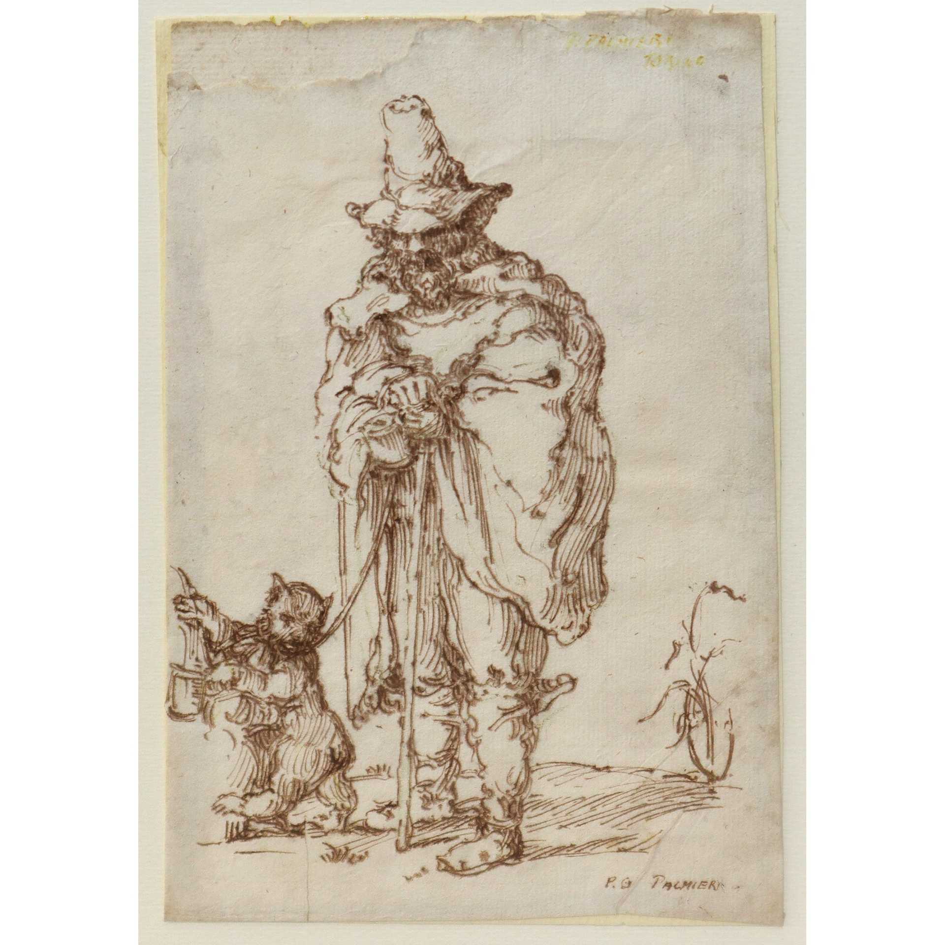 Pietro Paolo Palmieri (1737-1804) - Mendicante con gatto H mm 198x139 - in cornice H cm 35x30,5 Di
