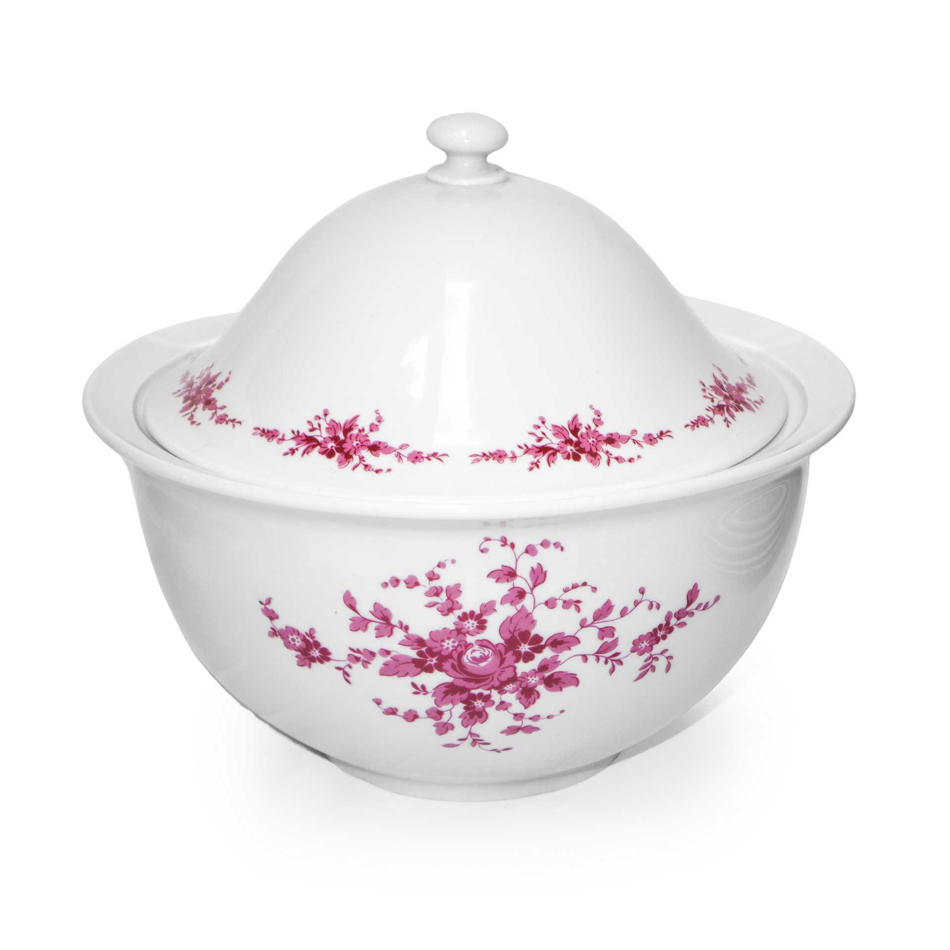 Henneberg Porzellan - Servizio di piatti in porcellana bianca con decorazioni floreali in rosa Com