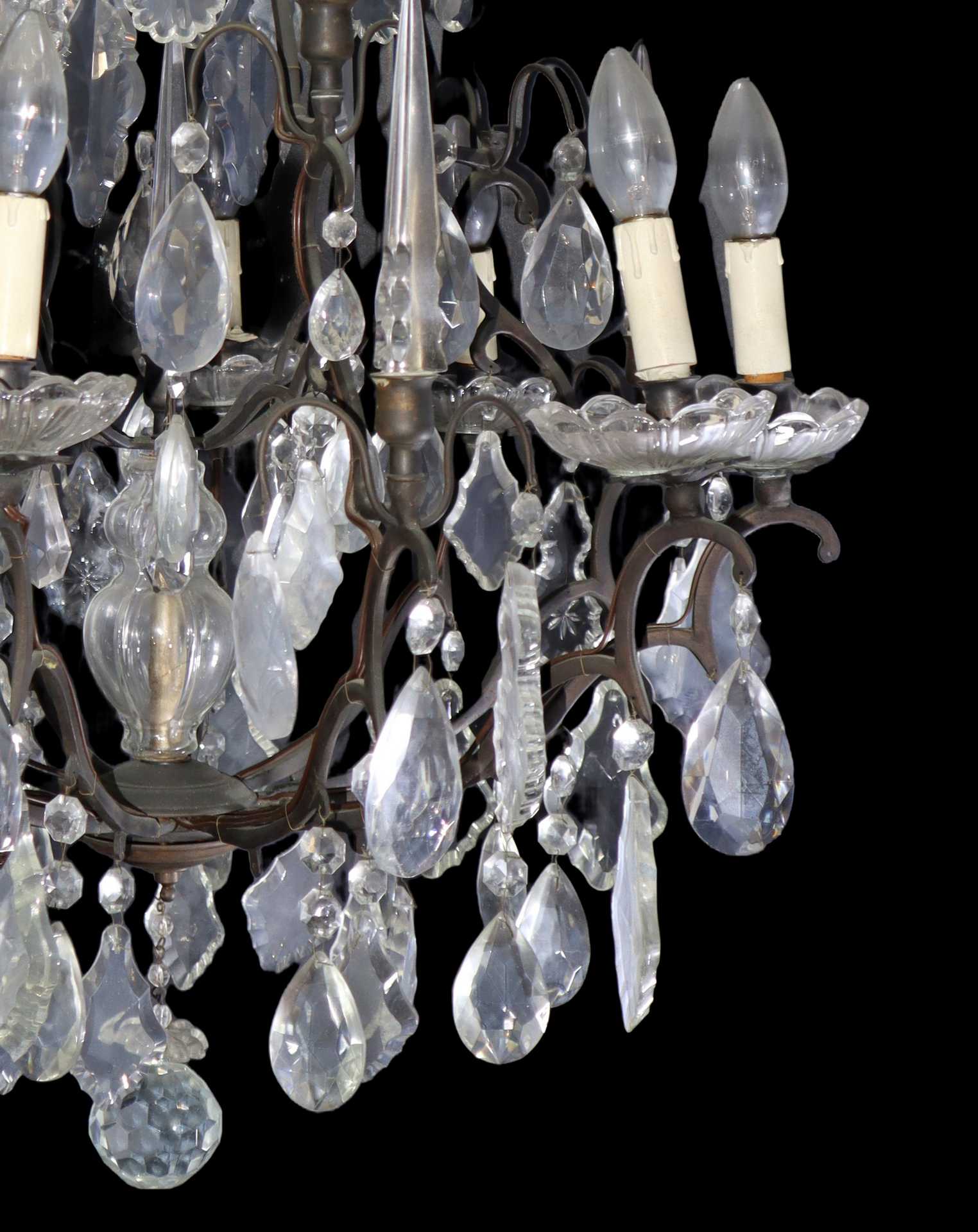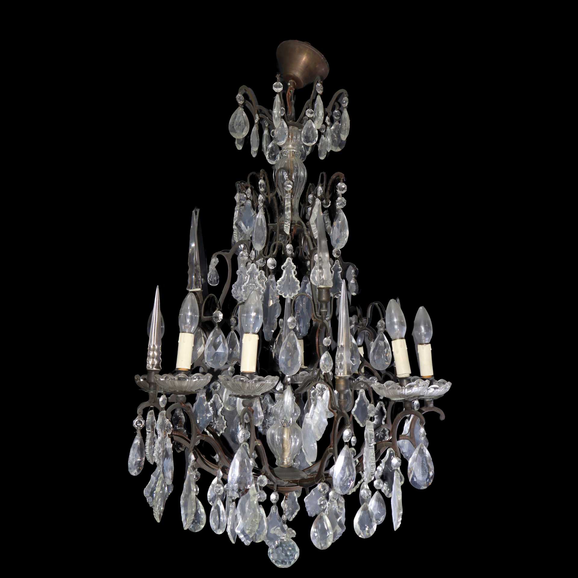 Lampadario con struttura in metallo, brindoli in vetro molati a mano, 8 luci, Early 20° Secolo