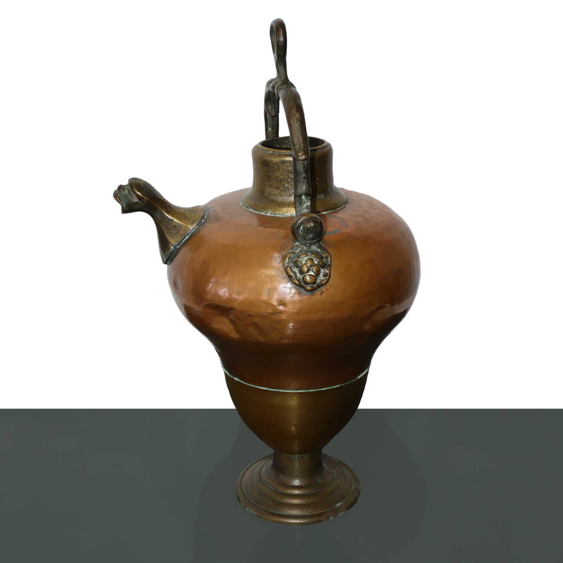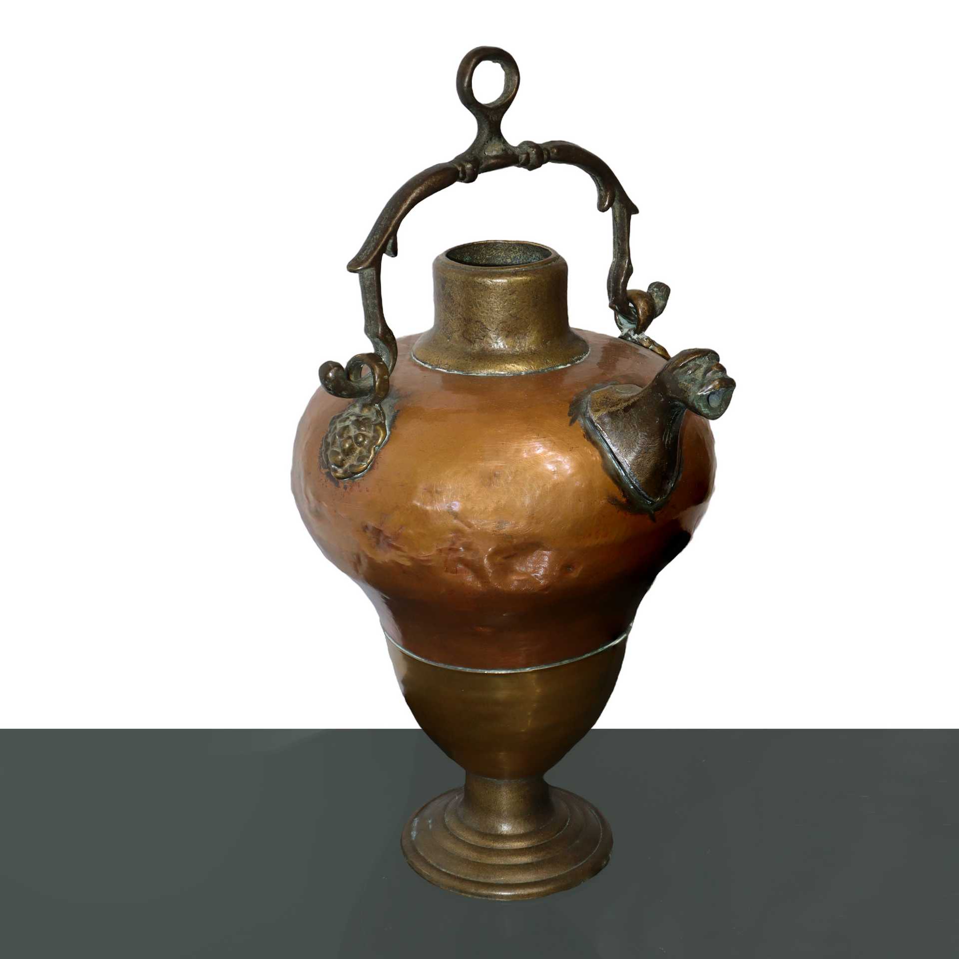 Acquamanile in bronzo e rame a due colori, con testine di leoni e beccuccio antropomorfo, Late 17° S