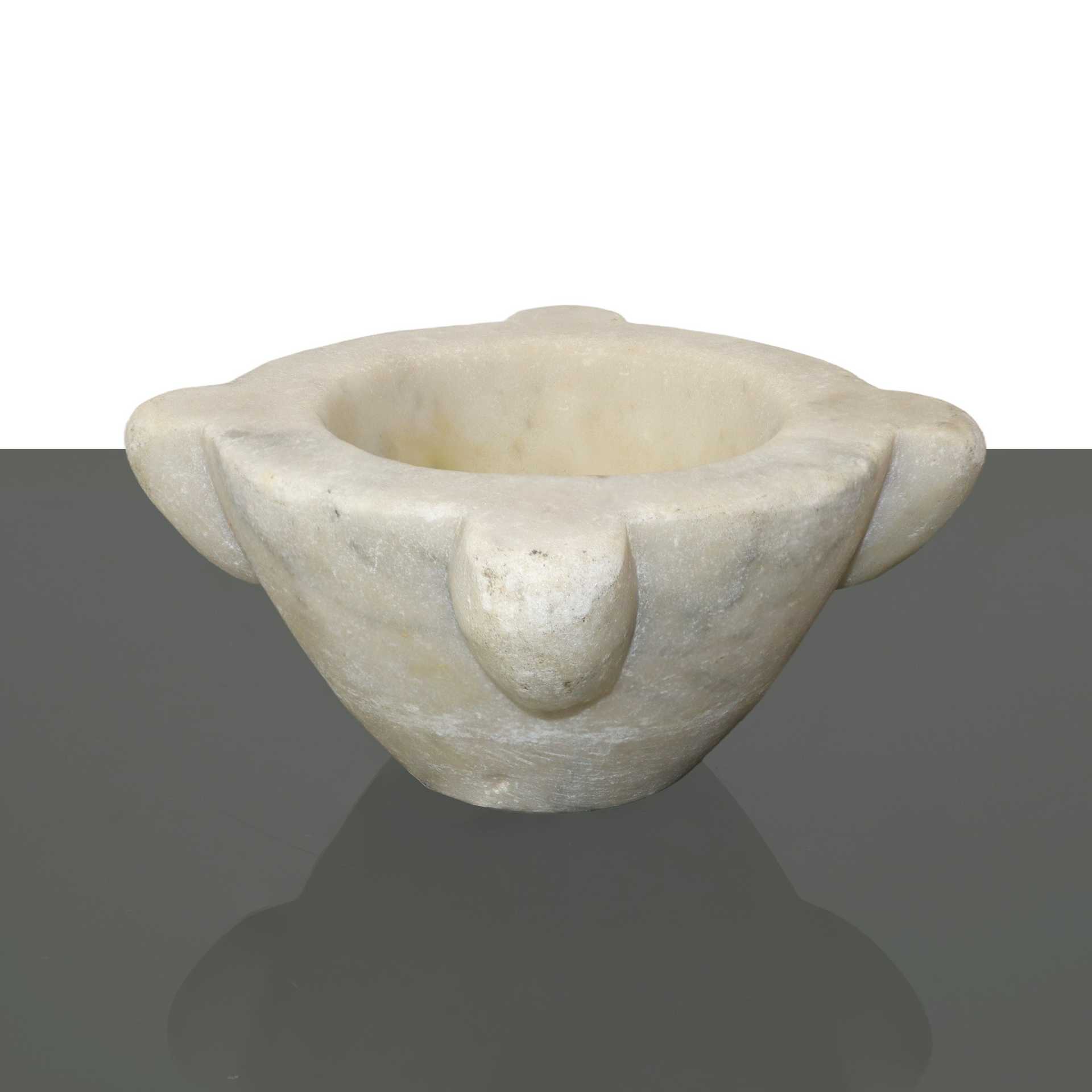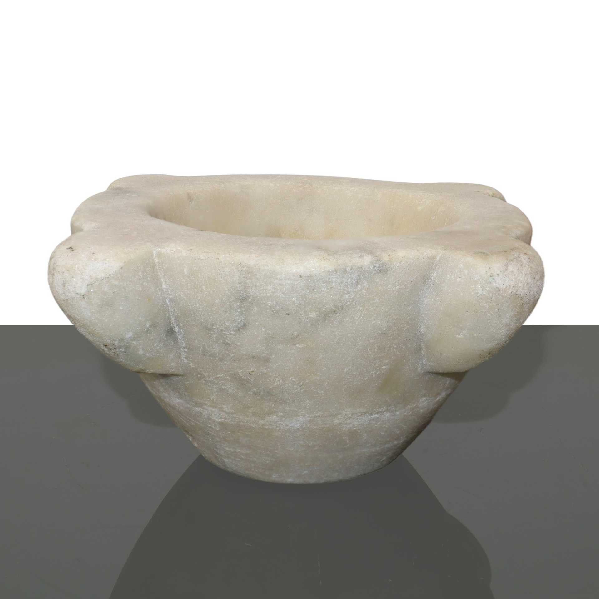 Mortaio in marmo bianco con pestello in legno, 19° Secolo