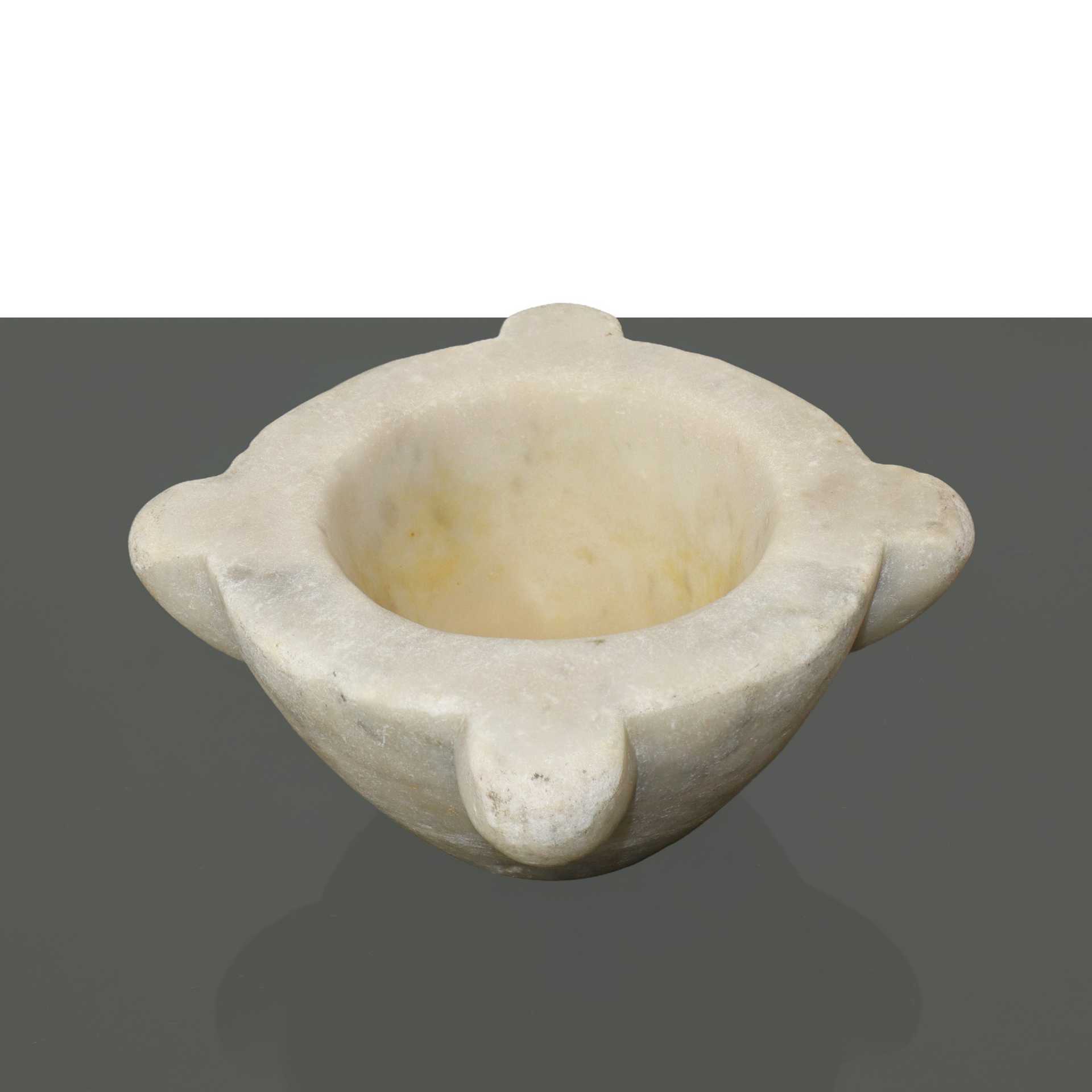 Mortaio in marmo bianco con pestello in legno, 19° Secolo H cm 11 - diam. cm 25