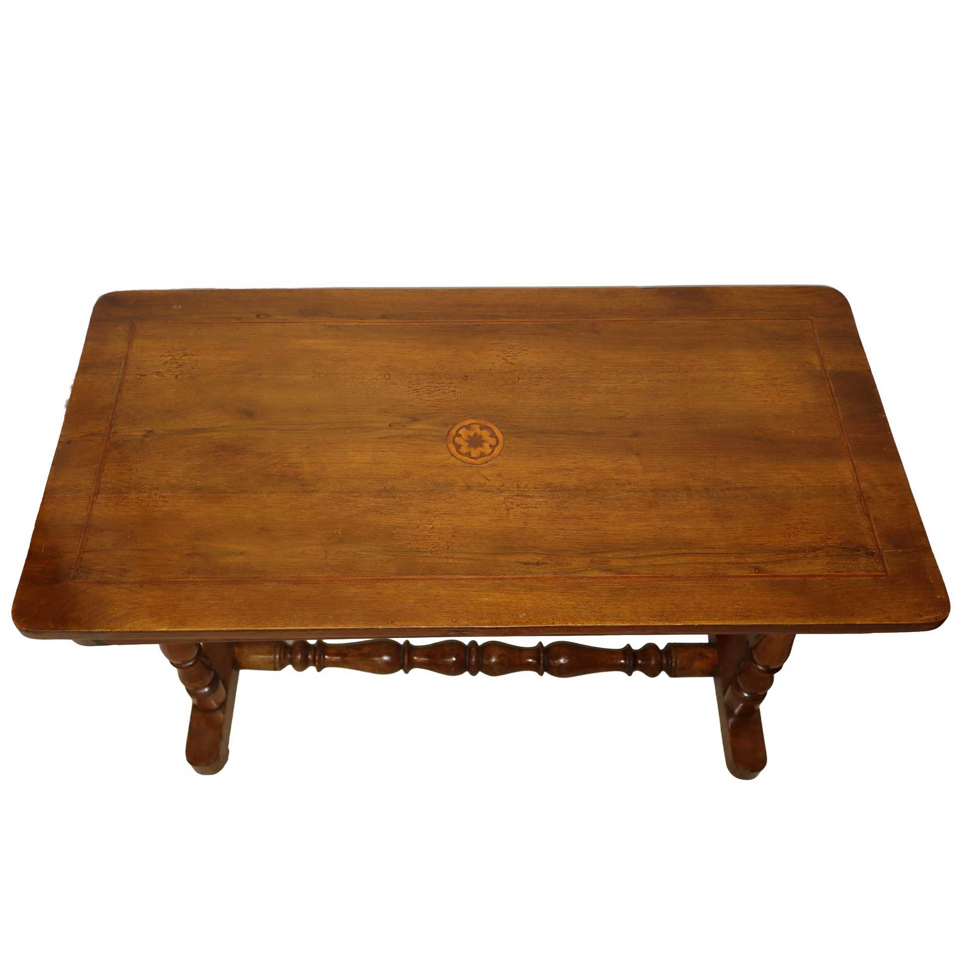 Tavolinetto rettangolare con piano, Late 19° Secolo H cm 63x89x44 Con intarsio a fiore centrale e q