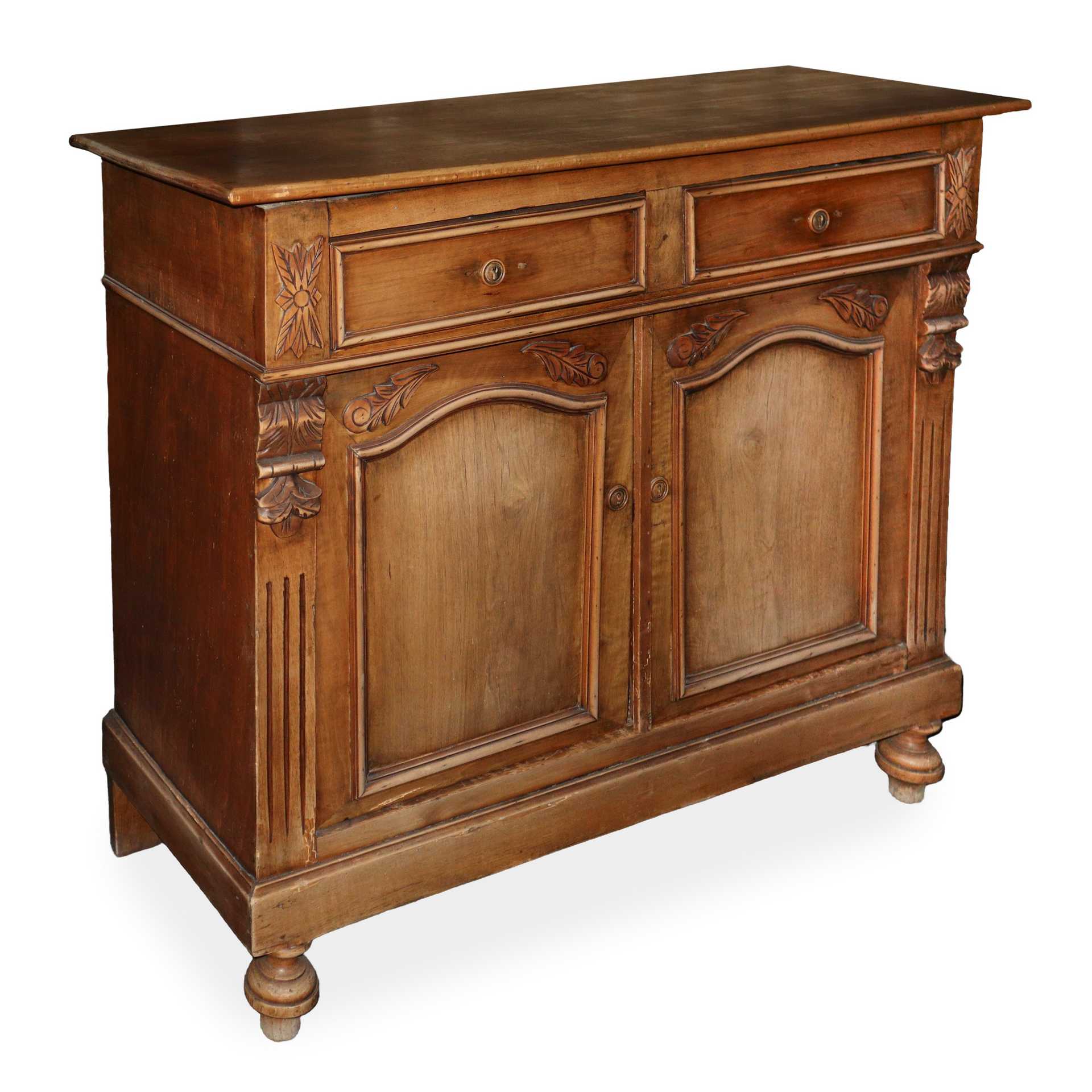 Credenza bassa in legno di noce con due cassetti sottopiano e due sportelli, early 20° Secolo H cm