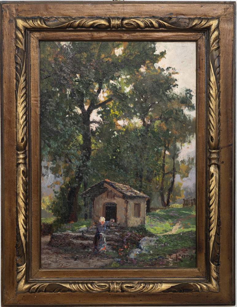 Leonardo Roda Racconigi (CN) 1868 - 1933 Torino, Paesaggio, olio su tavola cm 48x33 firmato in basso a dx