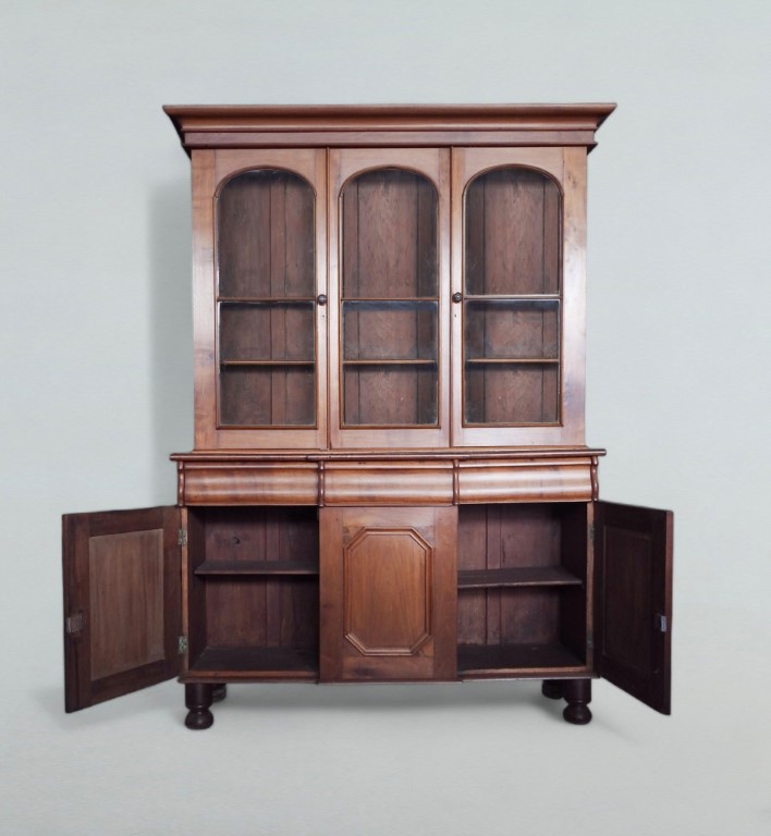 Grande libreria a doppio corpo in legno di frutto,