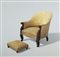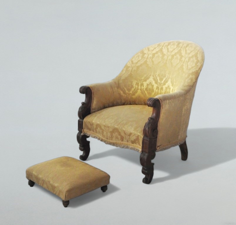 ricoperta in damasco giallo oro e completa di poggiapiedi