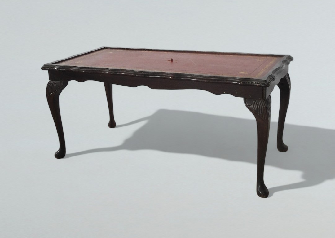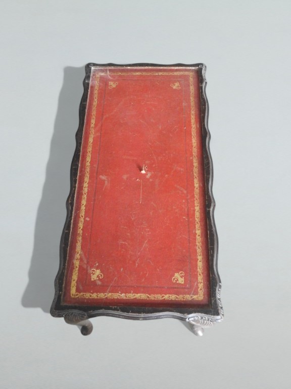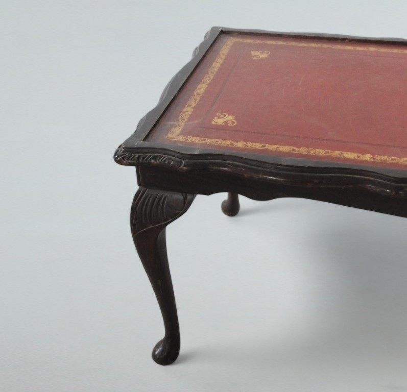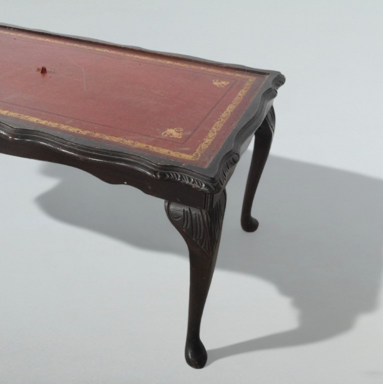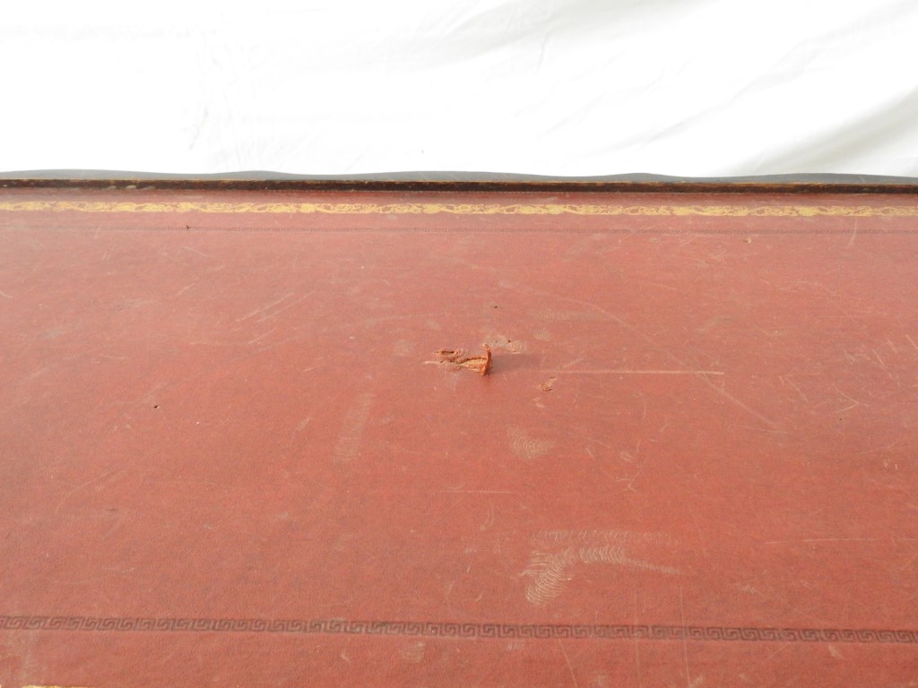 piano sagonato ricoperto in marocchino rosso bulinato oro, gambe mosse