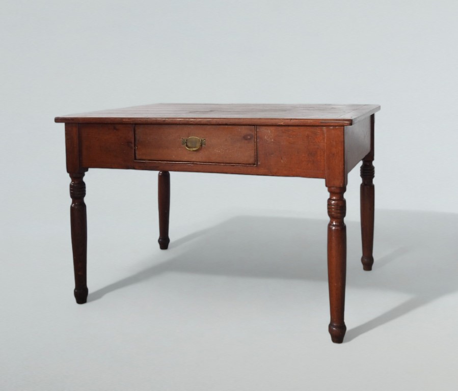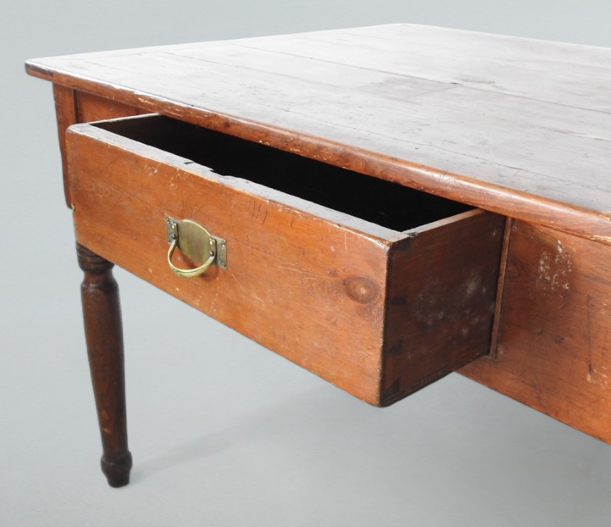 piano rettangolare, un cassetto nella fascia, gambe tornite