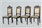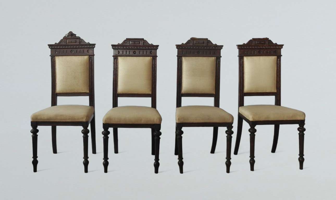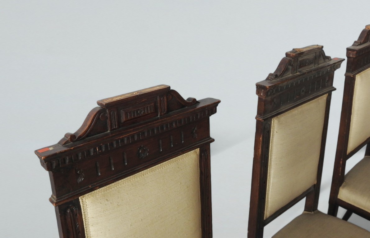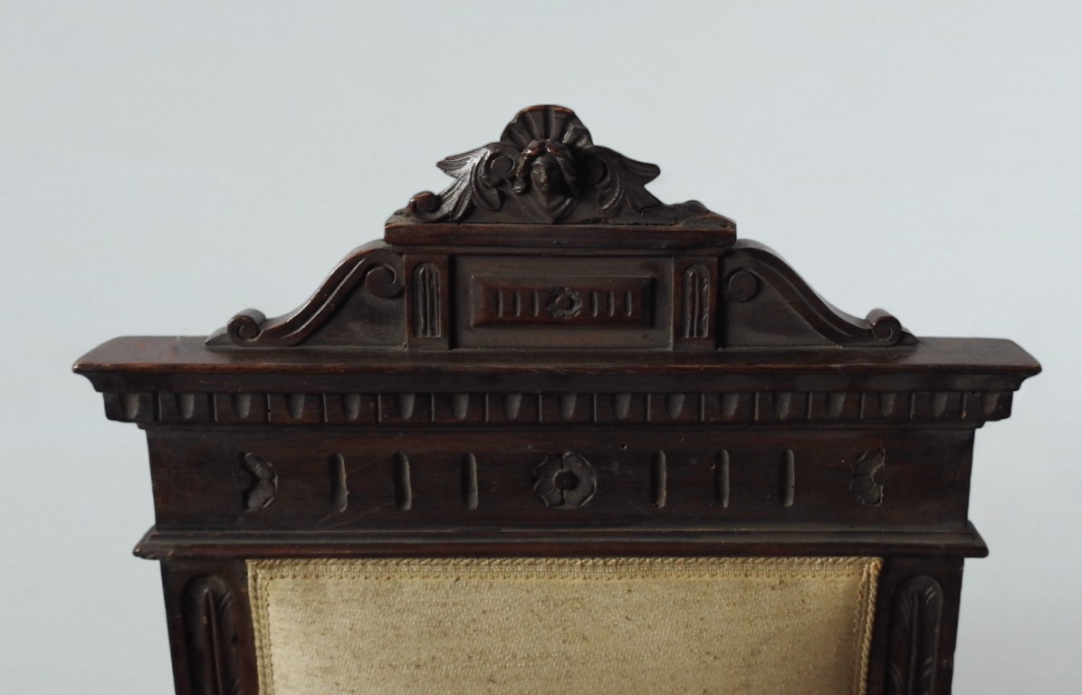 spalliera rettilinea, gambe anteriori tornite e posteriori a sciabola, ricoperte in tessuto avorio