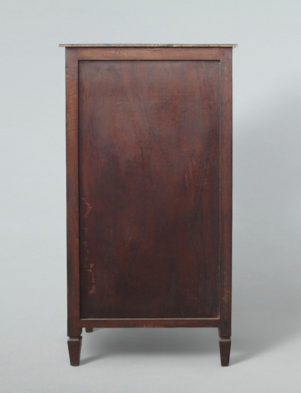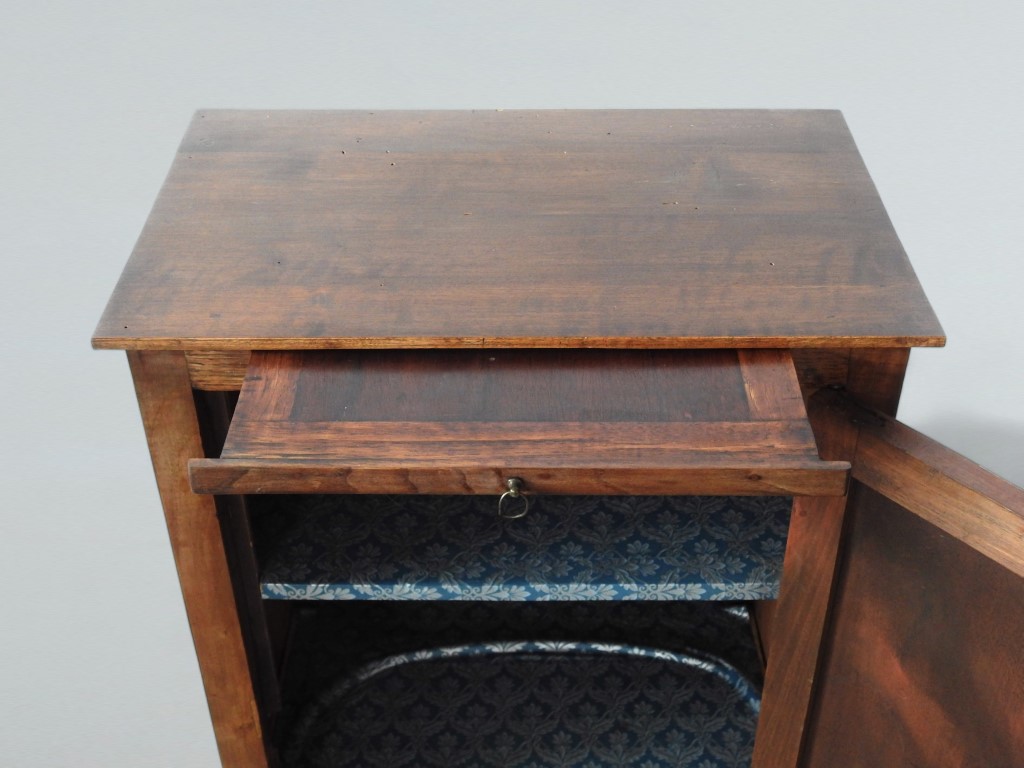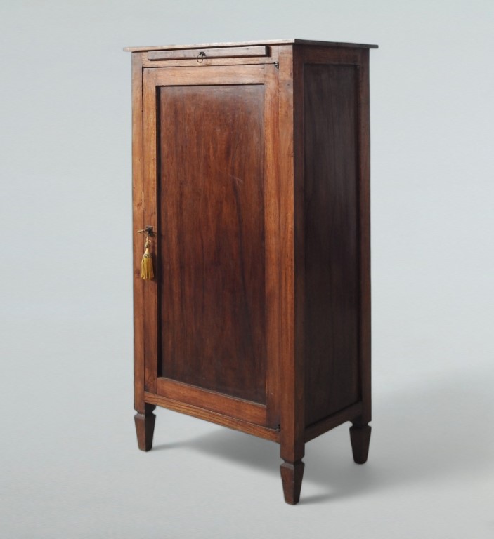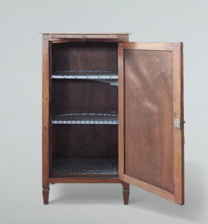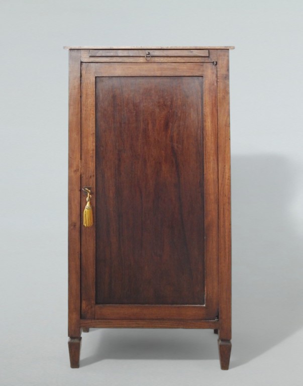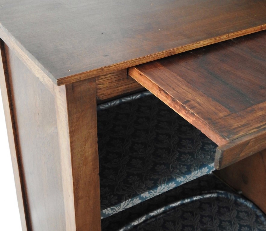 piano rettangolare, piano scrittoio estraibile, uno sportello, gambe troncopiramidali