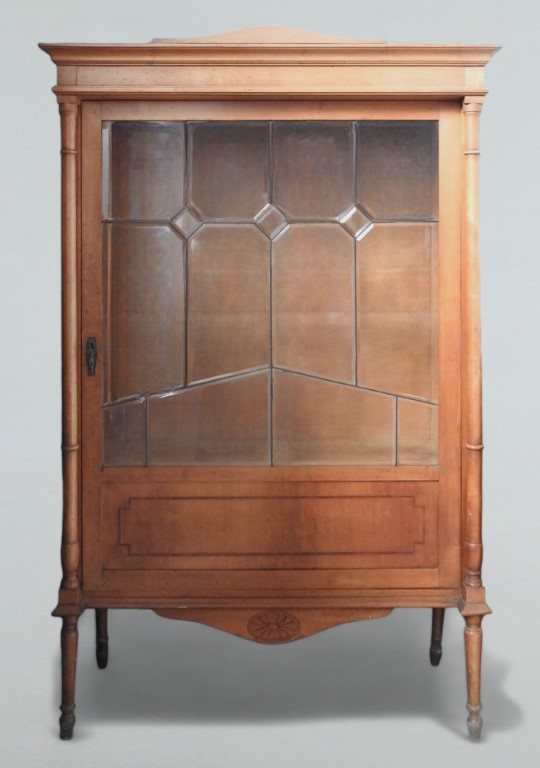 sportello con vetri piombati, inquadrato da due colonne, alte gambe tornite
