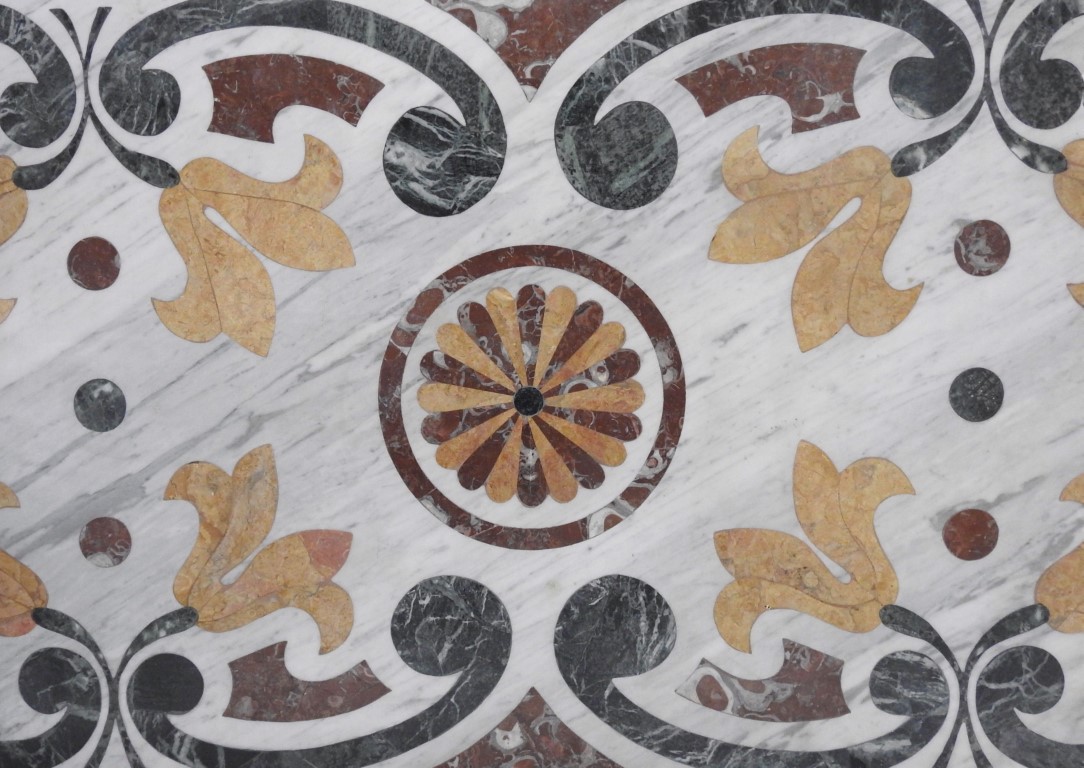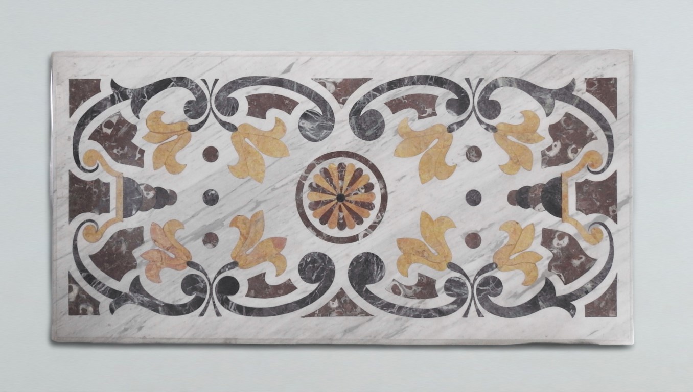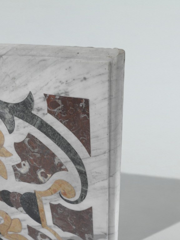 intarsiato con marmi pregiati colorati a formare volute e fiori
