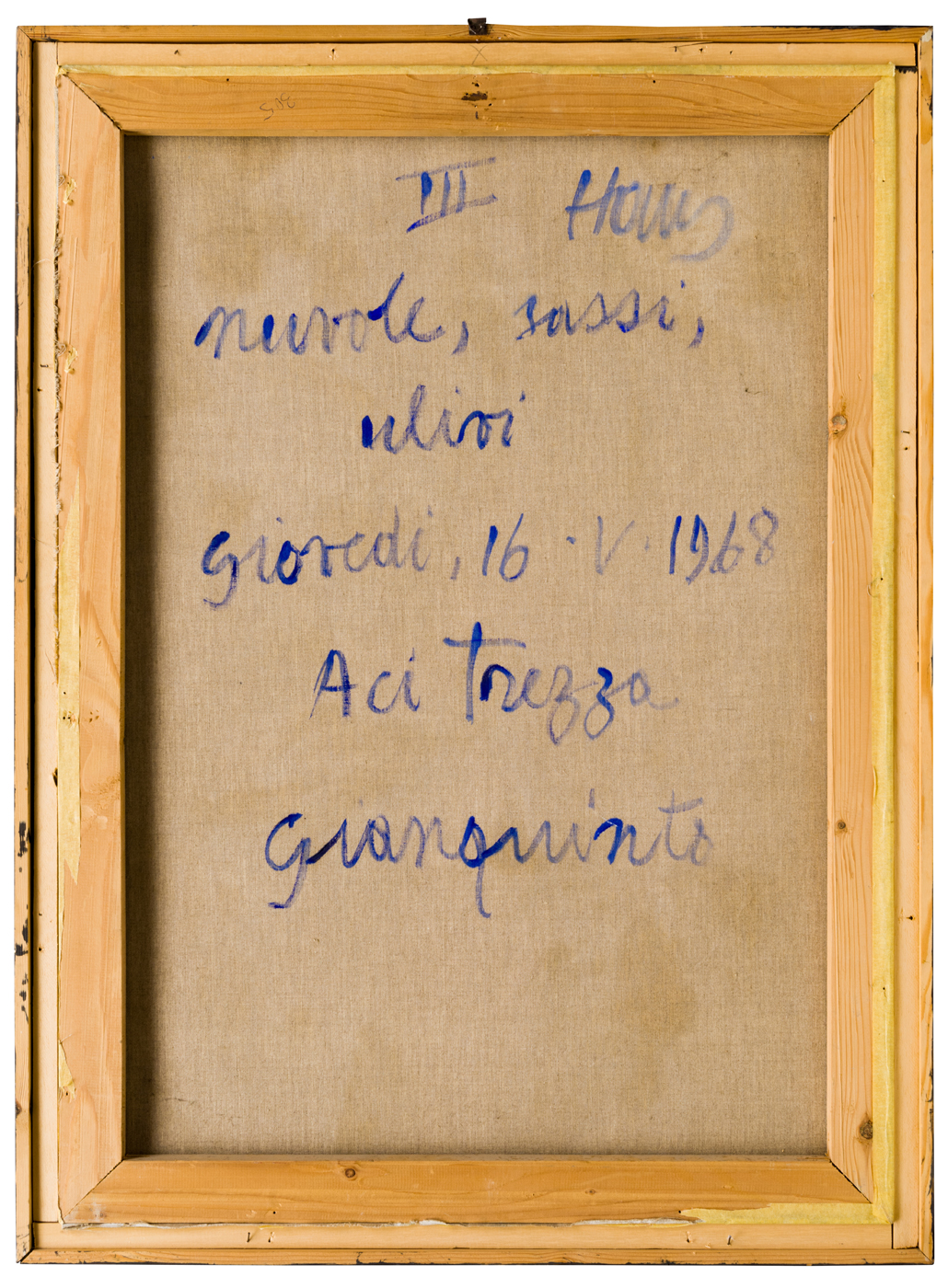 Altre iscrizioni: “III”, iscrizione illeggibile, “numeri, sassi, ulivi”, “Aci Trezza” sul verso