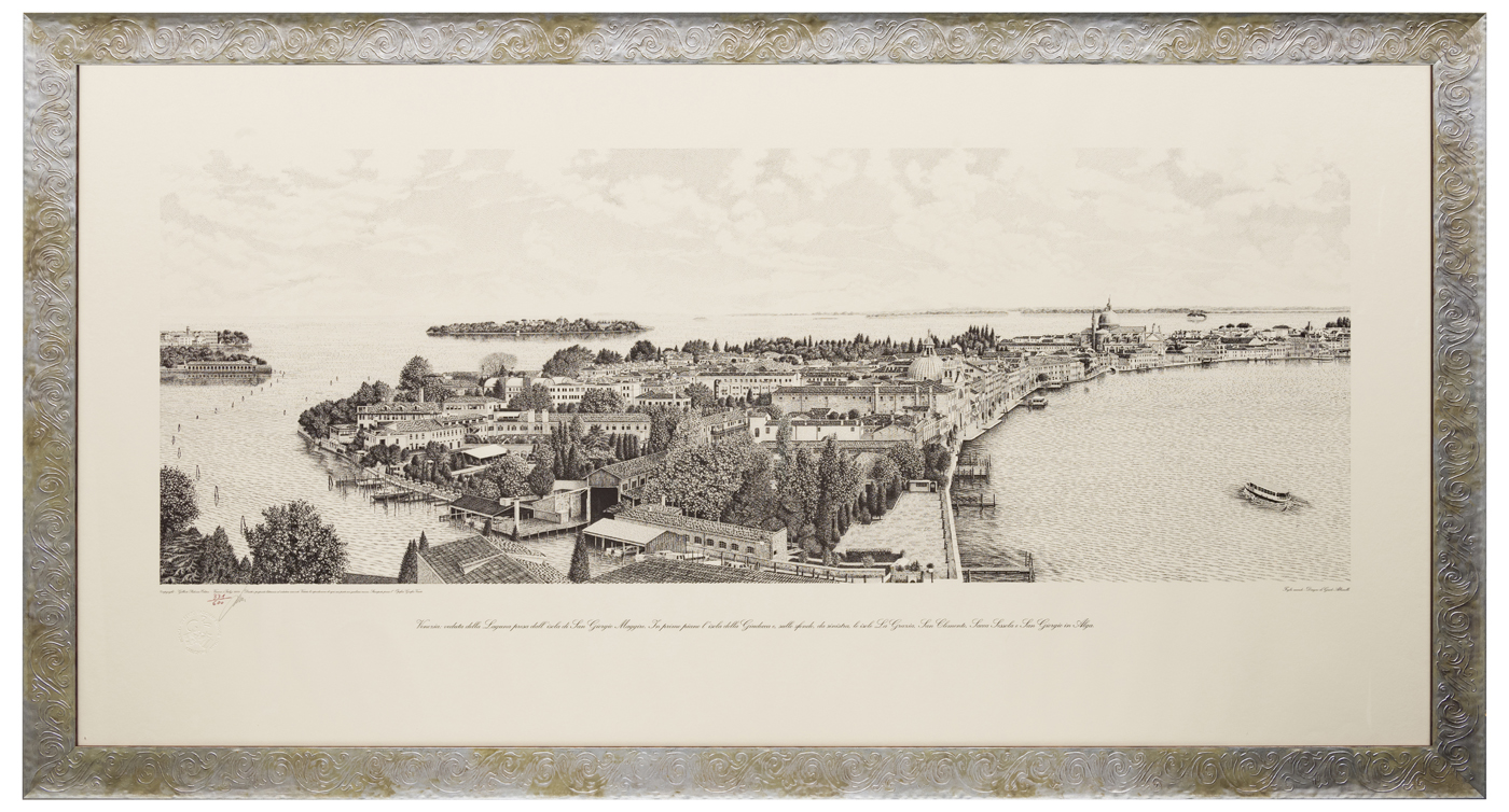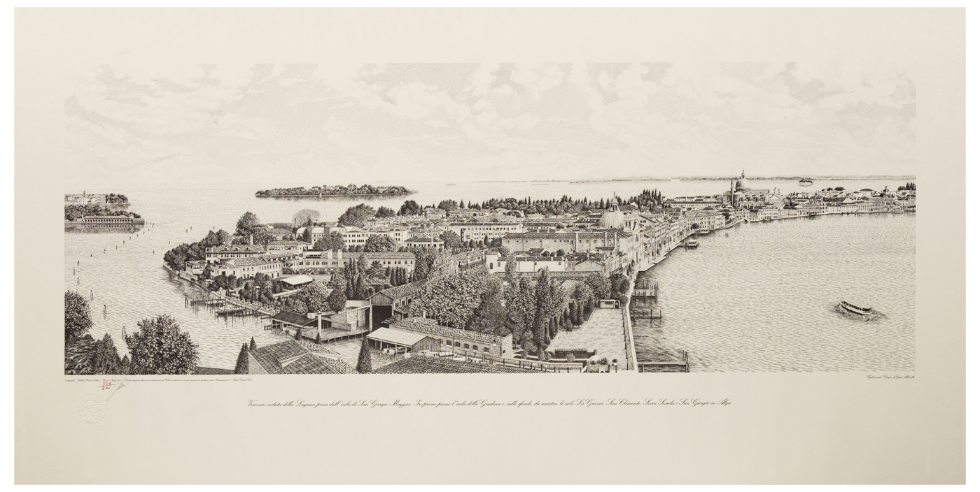 La tavola è parte di un nucleo che compone una veduta di Venezia a 360 gradi, complessivamente lunga 9,80 metri, ma divisa in sette parti per praticità di stampa. Il disegno è stato realizzato con pennino ed inchiostro di china nero e dunque riprodotto con stampa a tiratura limitata, dall'editore Gilberto Padovana di Vicenza (comunicazione dell'artista del 16 dicembre 2020).